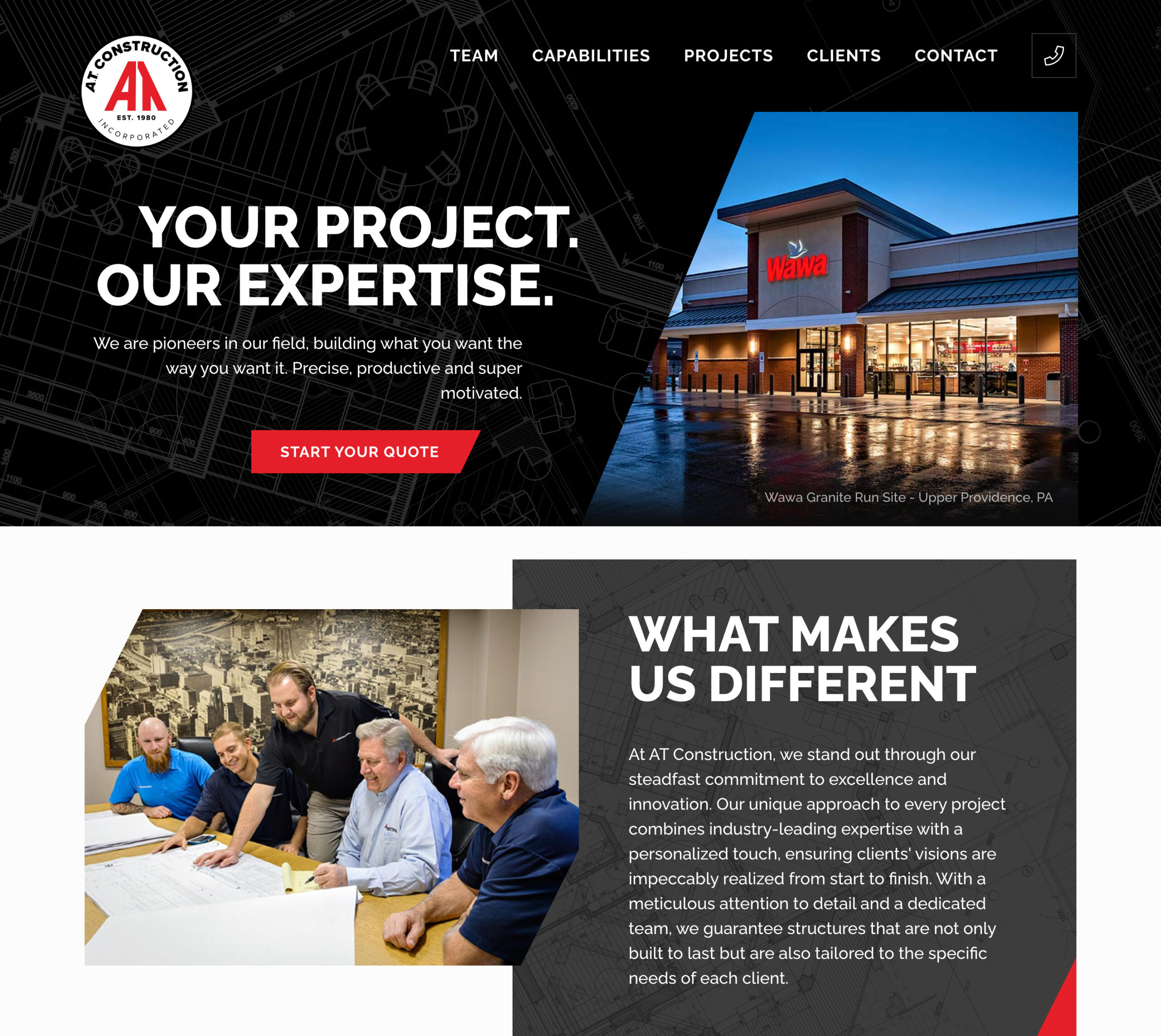 The project centered around elevating AT Construction’s professional image while giving them a practical, easy-to-manage website.